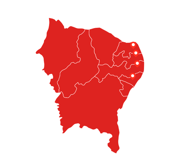 Atualmente, temos bases instaladas em quatro estados do Brasil: Pernambuco, Paraíba, Alagoas e Rio Grande do Norte. Somos um time que cresce a partir do crescimento dos nossos clientes.